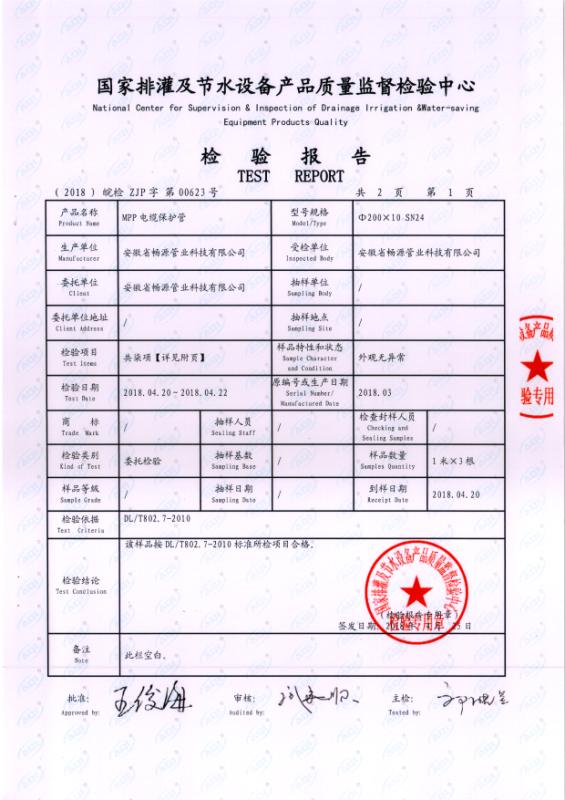 MPP電力保護(hù)管檢驗(yàn)報告